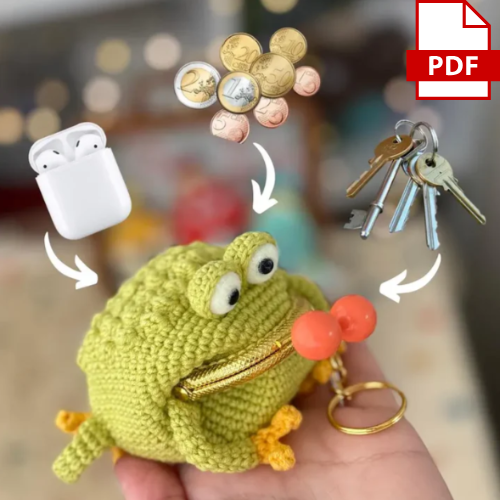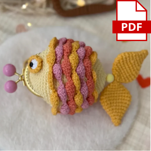 This product is a digital PDF pattern that teaches you step-by-step how to make seven unique crochet wallets — each one with its own fun character and design.